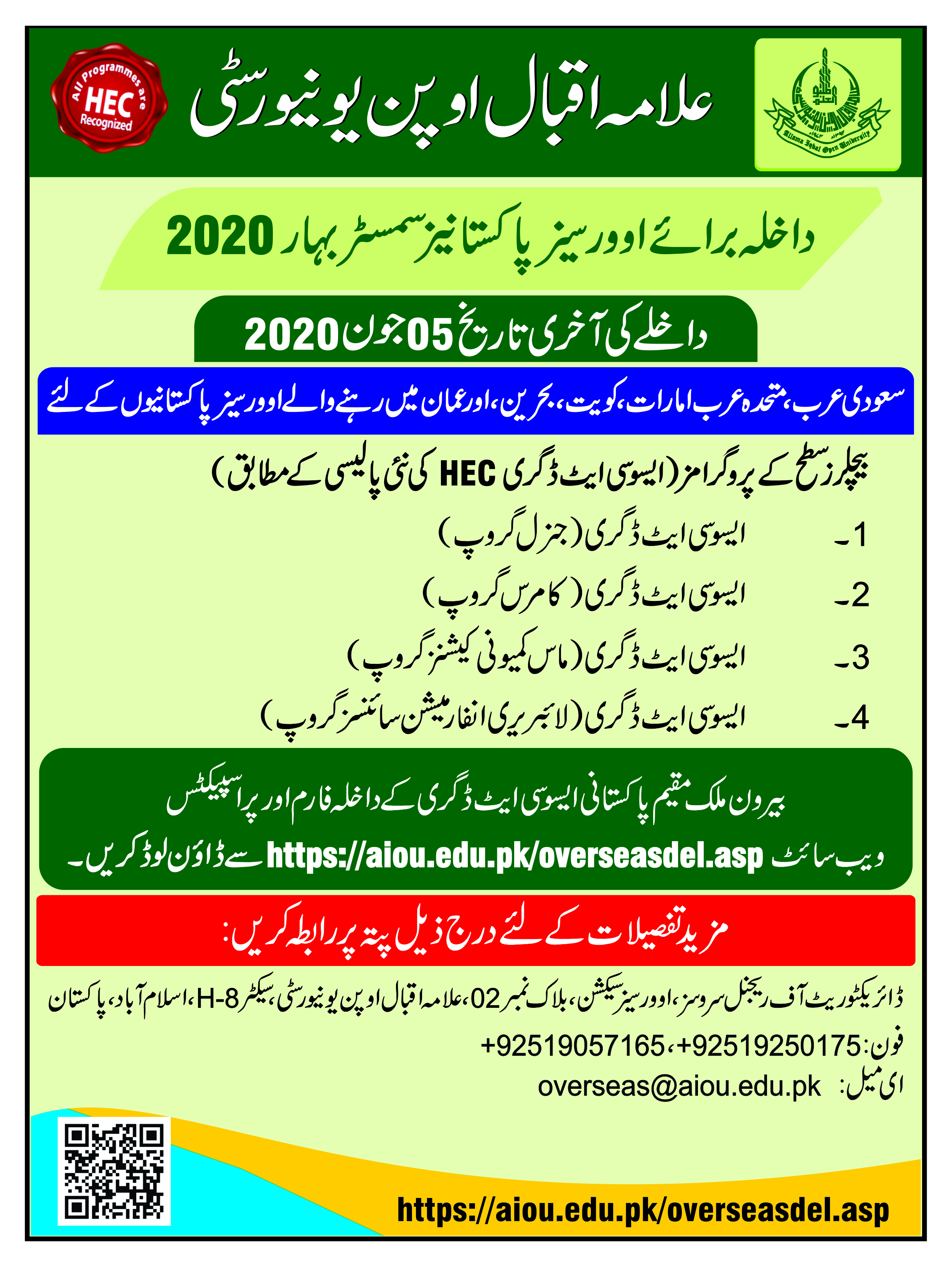 Overseas Pakistani Students Programmes (Last Date: 05-June-2020)