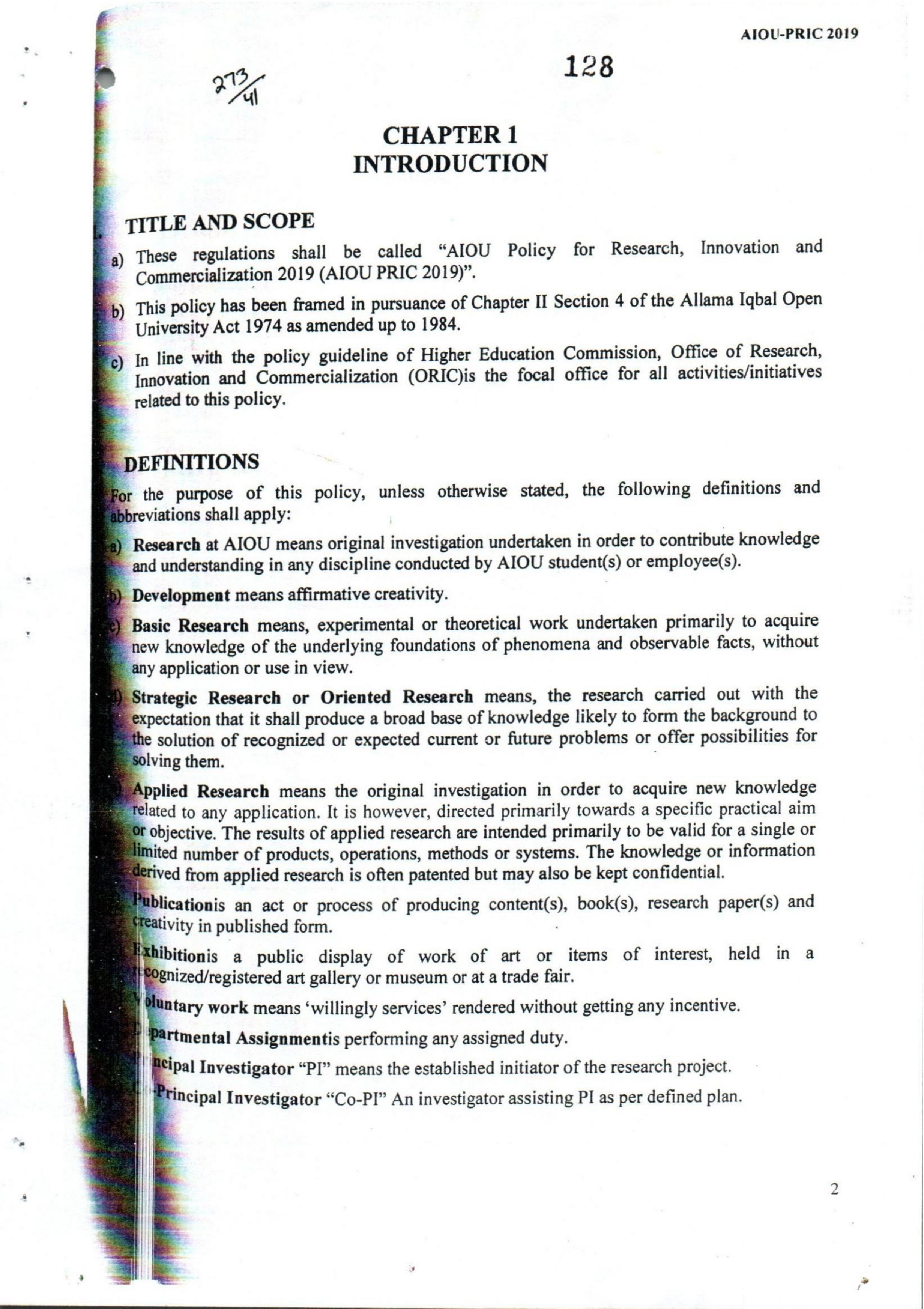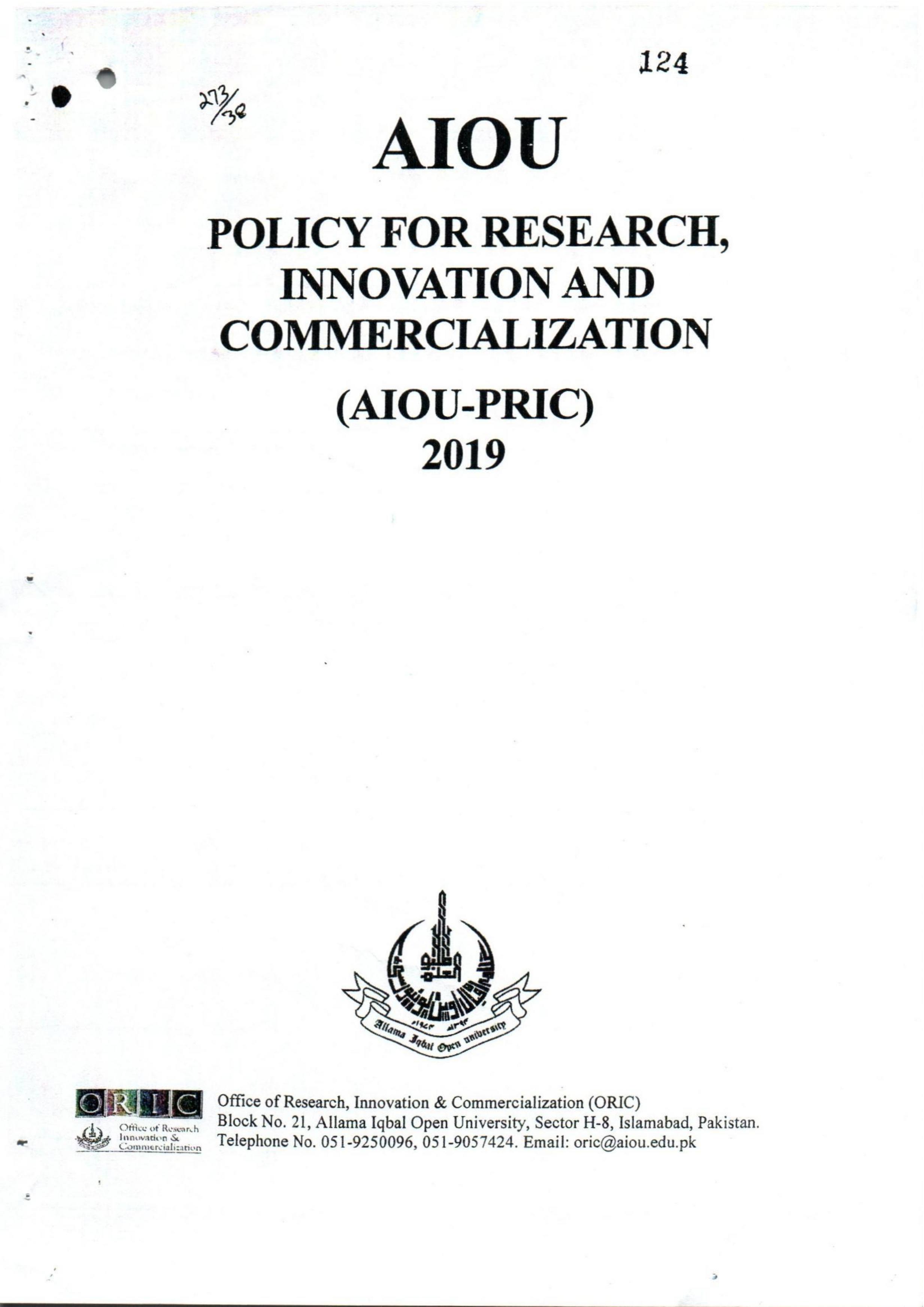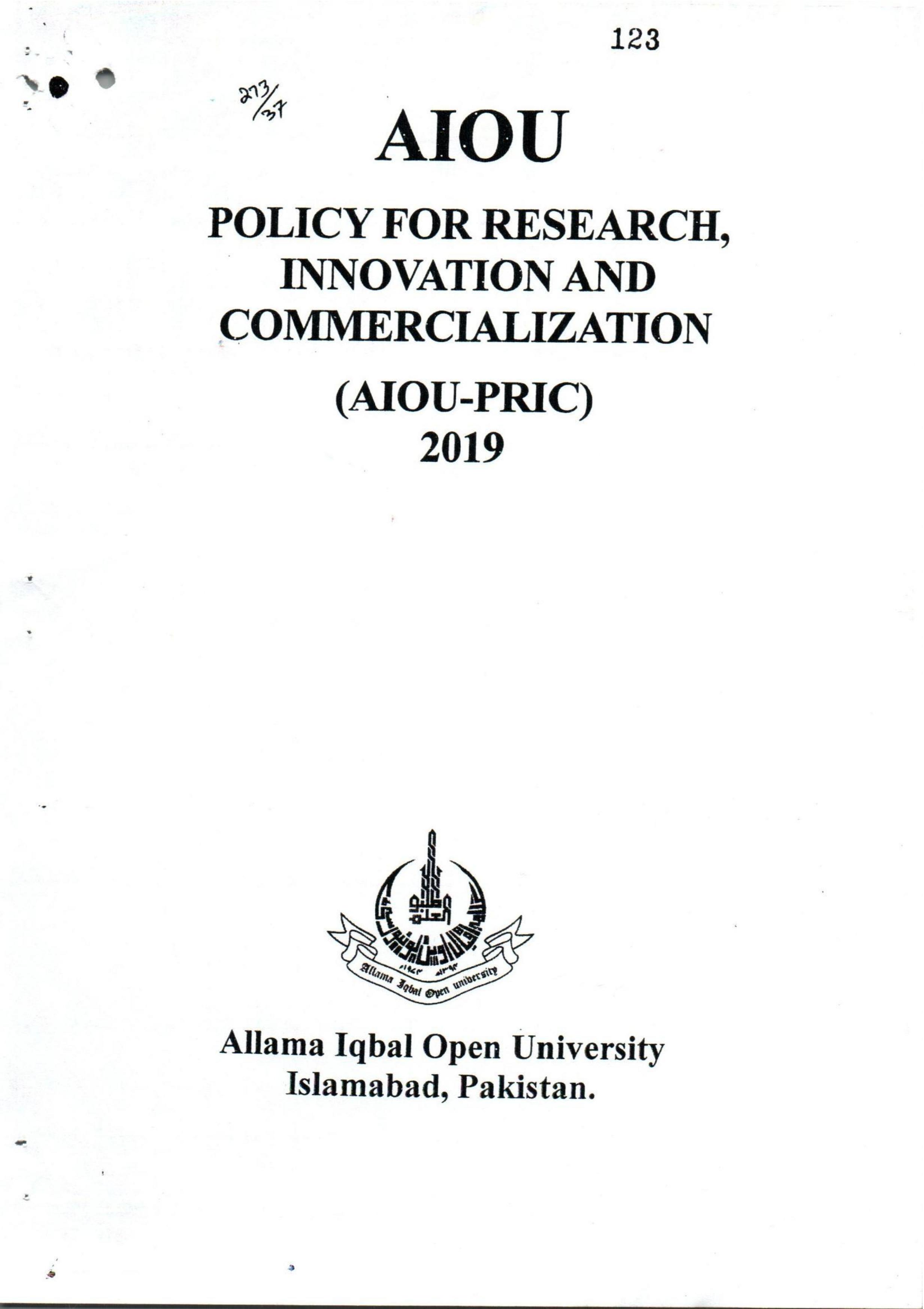online.aiou.edu.pk - /LIVE_SITE/RTI/RTI data to be uploaded on website/Policy for Research, Innovation and Commercialization 2019/