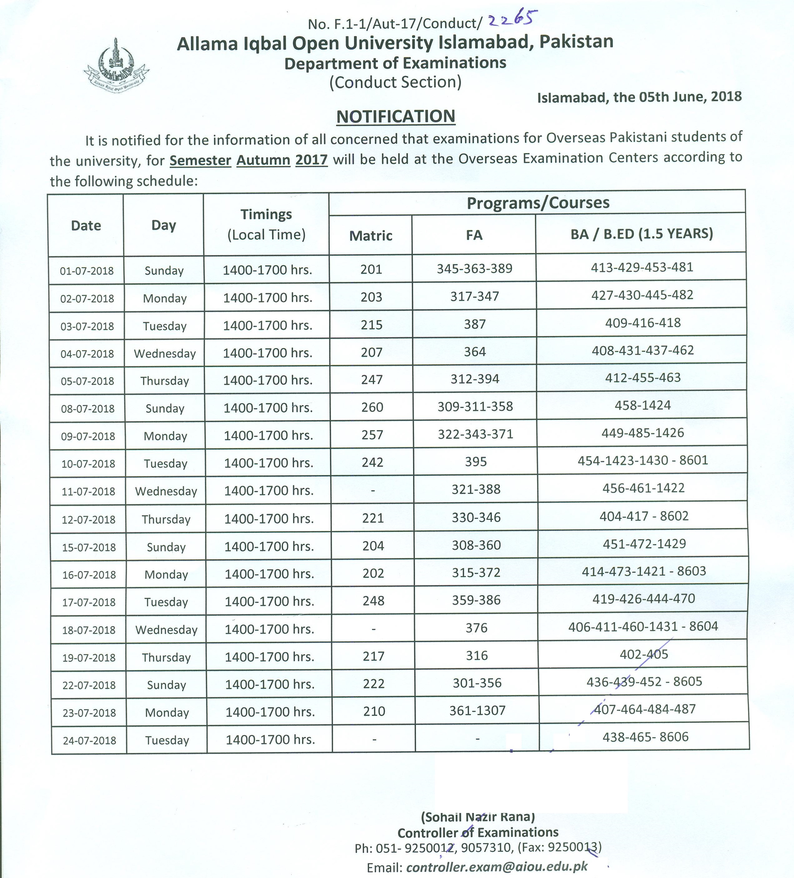3/15/2018 4:29 PM 1283284 Date Sheet Matric, FA, F.Sc, OpenTech, ATTC, PTC, CT & BEd(old) Autumn 2017.jpg