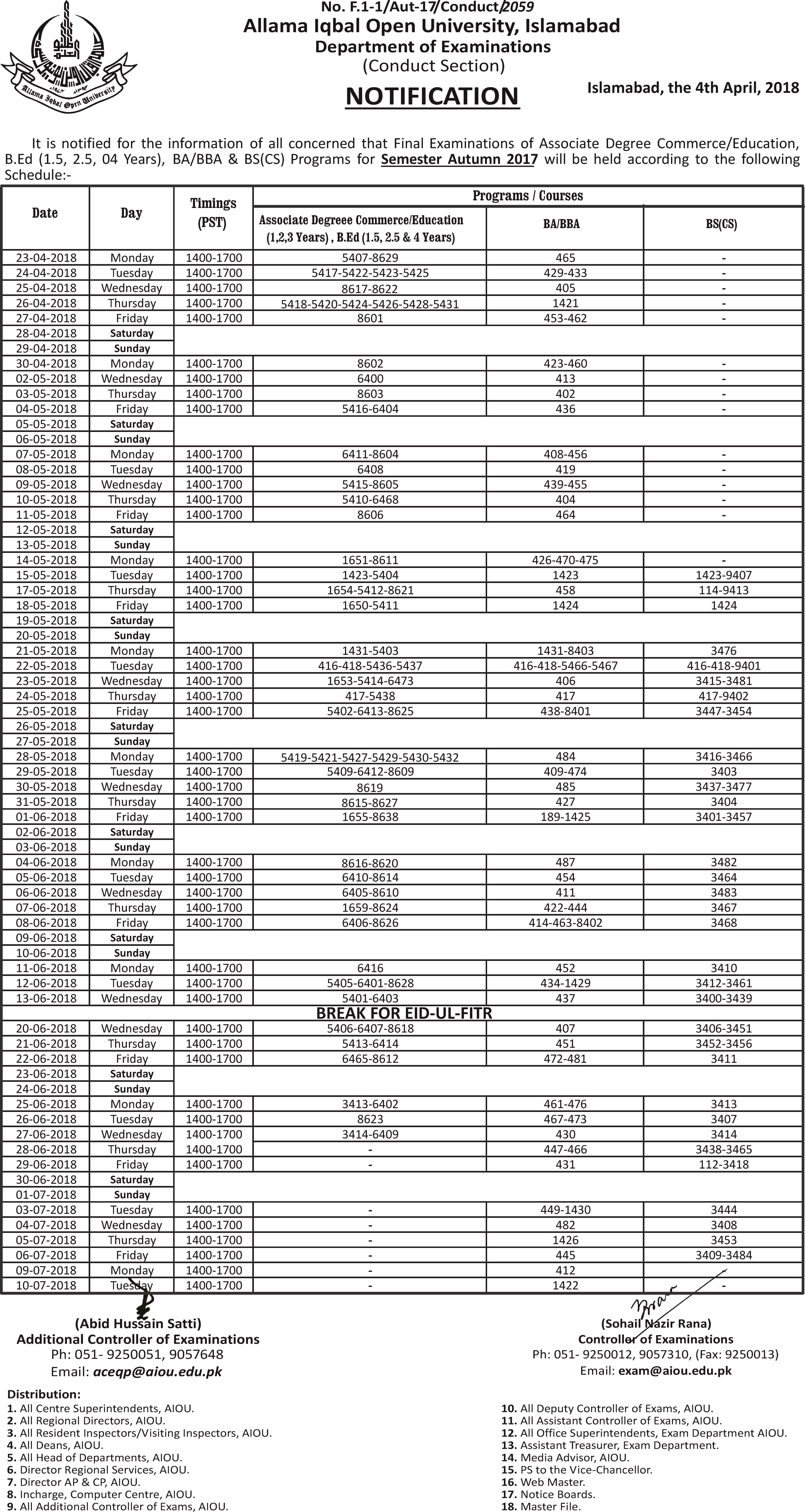 4/4/2018 8:06 PM 7349610 Date Sheet of ADE, ADC, B.ED (New), BA, BBA, BS(CS) Autumn 2017.jpg